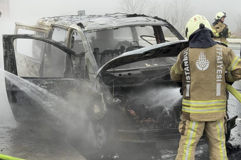 Arnavutköy'de İstanbul Havalimanı'nda çalışan VIP transfer taksi minibüs, seyir halindeyken alev aldı. Sürücü son anda aracı yol kenarına çekerek terk ettiği olayda can kaybı ya da yaralanma yaşanmadı. Aracın alev alev yandığı anlar cep telefonu kamerasıyla kaydedildi. Yol bir süre trafiğe kapandı.