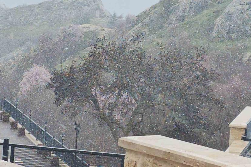 Elazığ’ın 4 bin yıllık tarihi Harput Mahallesi’nde nisan ayının ortasında kar sürprizi yaşandı.