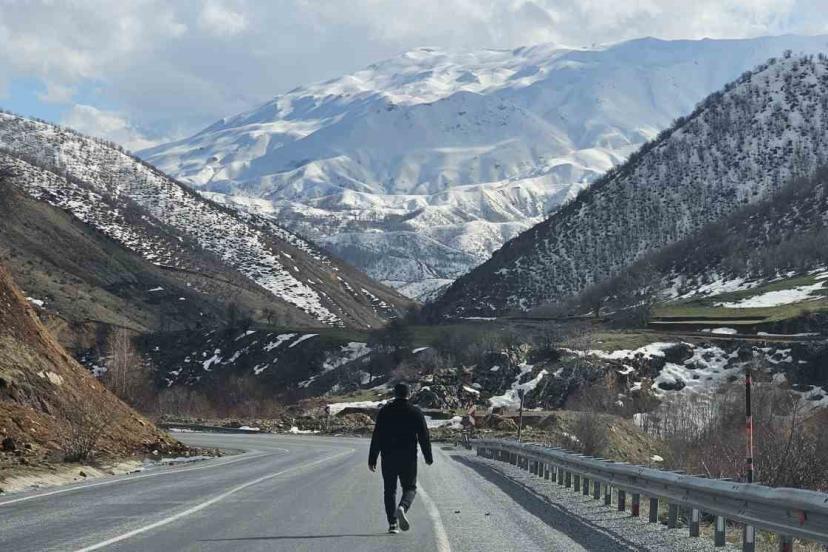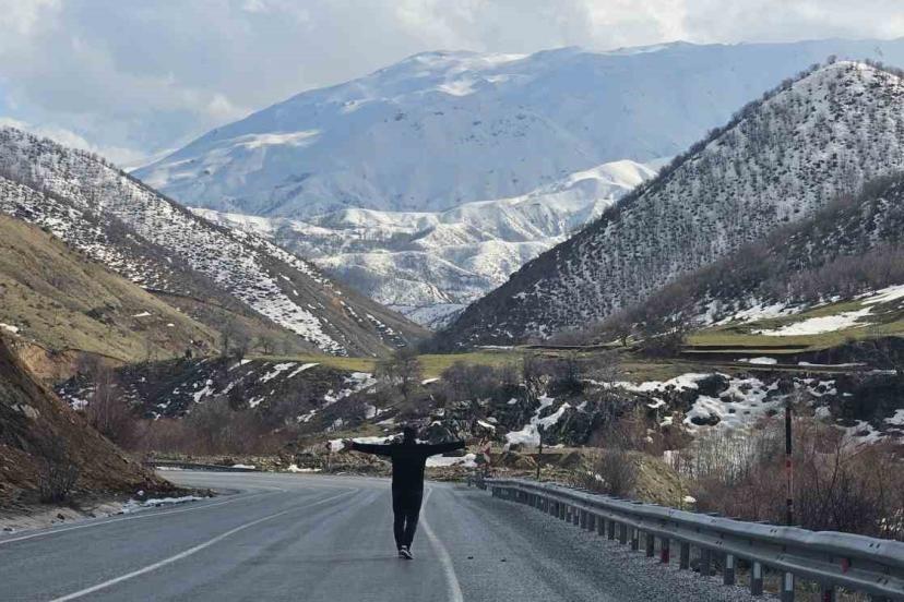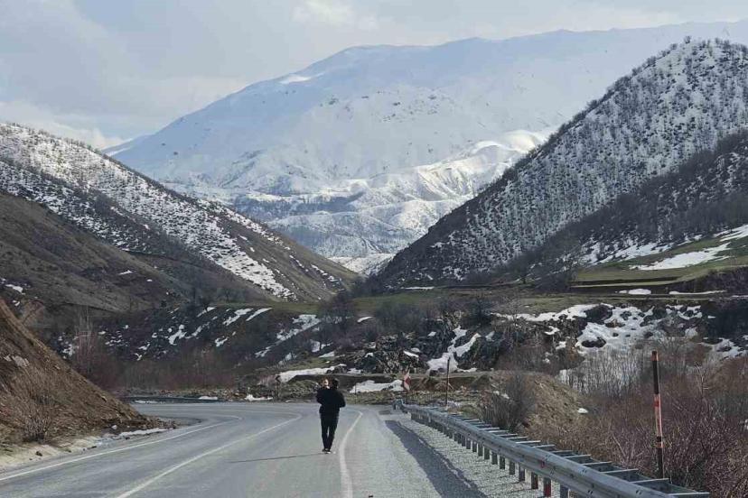 Bitlis’in Tatvan ile Hizan ilçeleri arasında uzanan dağlık yol güzergâhı, kış ve baharın iç içe geçtiği eşsiz görüntüsüyle görenleri hayran bırakıyor.