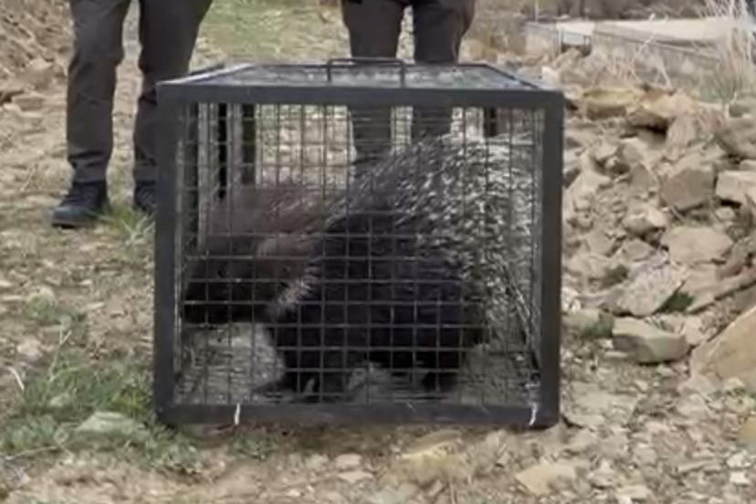 Hakkari’nin Yüksekova ilçesinde yaralı halde bulunan Hint oklu kirpi, Van’daki tedavisinin tamamlanmasının ardından doğal yaşam alanına bırakıldı.