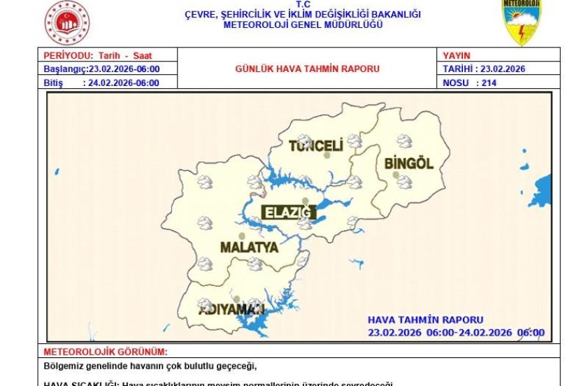Meteoroloji 13. Bölge Müdürlüğü tarafından yapılan açıklamada, "Tunceli ve Bingöl çevrelerinin yüksek kar örtüsüne sahip eğimli alanlarda çığ tehlikesi bulunduğundan yaşanabilecek olumsuzluklara karşı dikkatli ve tedbirli olunması gerekmektedir" denildi.