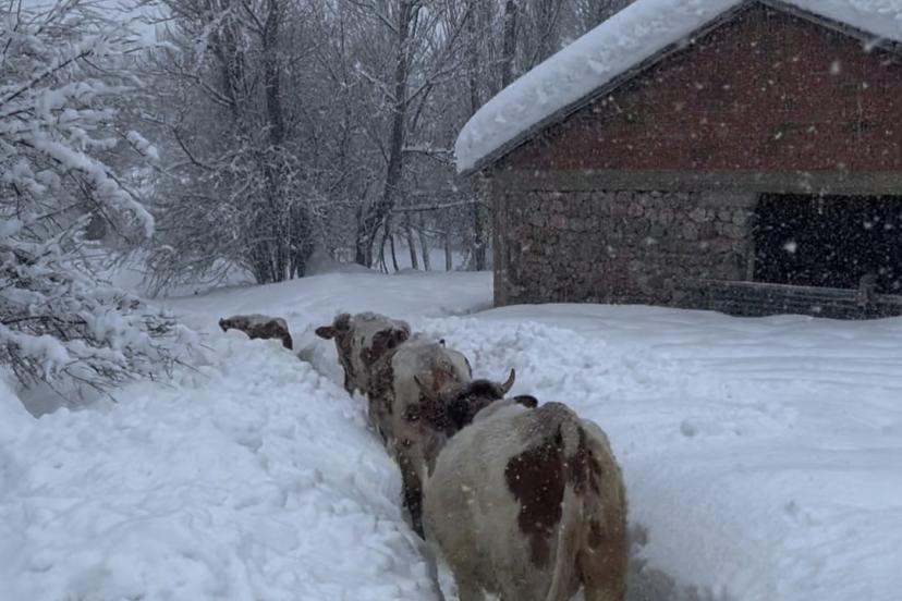 Tunceli’nin Ovacık ilçesinde kar kalınlığı 1,5 metreyi aştı. İneklerin karlar arasında adeta kaybolduğu anlar vatandaşlar tarafından görüntülendi.