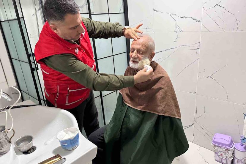 Türk Kızılay Muradiye Şube Başkanı Selçuk Yay, Ramazan Bayramı öncesi ilçedeki yaşlı vatandaşların tıraşını evlerinde ücretsiz yaptı.