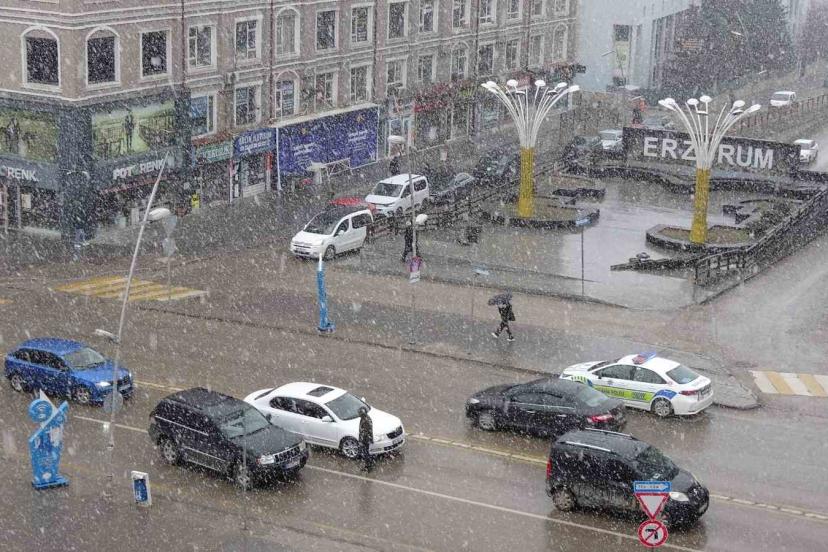 Türkiye baharı yaşarken, Erzurum güne lapa lapa karla uyandı