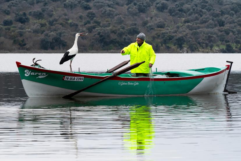 Yaren Leylek, yine Eskikaraağaç Leylek Köyü'ndeki Balıkçı Adem Yılmaz’ın kayığına kondu.