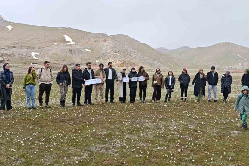 Üniversite öğrencilerinden çiğdemler arasında doğa yürüyüşü