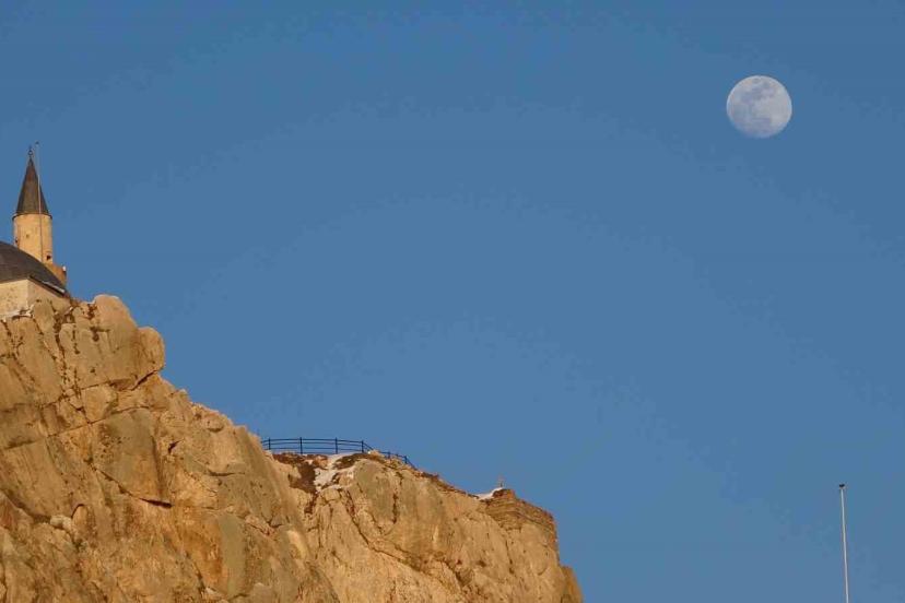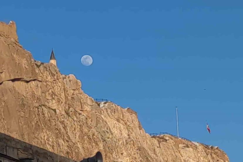 Van’da dolunay öncesi gökyüzünde beliren şişkin ay, tarihi Van Kalesi ile birlikte kartpostallık görüntüler oluşturdu. Akşam saatlerinde etkisini gösteren berrak hava, ayın tüm ihtişamıyla izlenmesine imkanı sağladı.