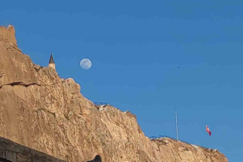 Van Gölü kıyısında bulunan ve sarp kayalıklar üzerine kurulu olan tarihi kale, gökyüzündeki berraklık, kalenin mimari detaylarını ve çevresindeki eski Van şehri kalıntılarını belirginleştirerek izleyenleri adeta bir zaman yolculuğuna çıkardı. Urartu döneminden günümüze uzanan görkemli yapısıyla kentin simgelerinden biri olan Van Kalesi’nin silueti, Horhor Medresesi Camii ve Süleyman Han Camii, gökyüzünde yükselen parlak ve dolgun ayla birleşince ortaya etkileyici manzaralar çıktı.