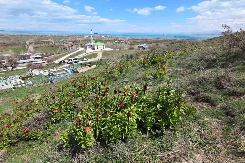 Van’ın Gevaş ilçesindeki yetişen ve halk arasında "ağlayan gelin" veya "hüzün çiçeği" diye bilinen ters laleler güzellikleriyle doğayı renklendiriyor.