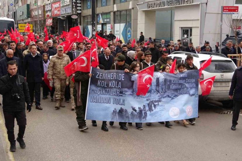 Van’da, 1. Dünya Savaşı’nda Hoy Cephesi’ne cephane taşıdıktan sonra dönüş yolunda soğuk hava nedeniyle donarak şehit düşen 120 kahraman çocuk anısına yürüyüş düzenlendi.