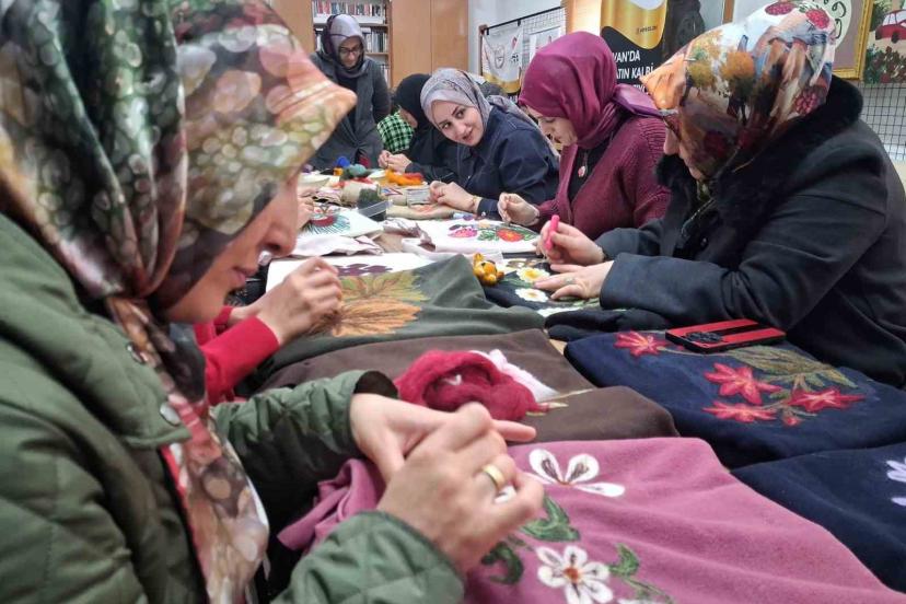 El sanatları usta öğreticisi Tuba Arslan ise keçe sanatının geçmişten günümüze uyarlanan kadim bir teknik olduğunu ifade ederek, "Keçe iğneleme tekniğiyle pano, şal ve çanta üzerine çalışmalar yapıyoruz. Birçok öğrencimiz şu anda sosyal medya ve internet üzerinden satış yaparak ev ekonomisine katkı sağlıyor" diye konuştu.