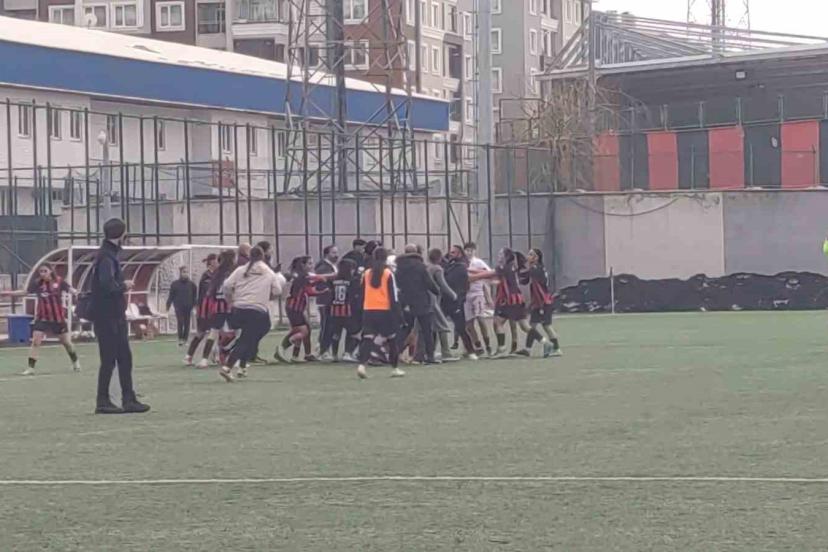 TFF Kadınlar 2. Lig’de Vangücü SK’nın Siverek Kadın SK’yı 2-0 yendiği maçın bitiş düdüğüyle birlikte yumruklar ve tekmeler ko...