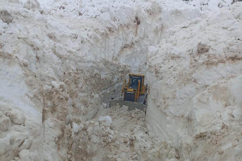 Kardan oluşan tüneller ve 8 metreyi bulan kar kalınlığına karşı zaman zaman zor anlar yaşayan ekipler, kepçe ile açamadıkları yolda ekskavatör de kullanıyor.