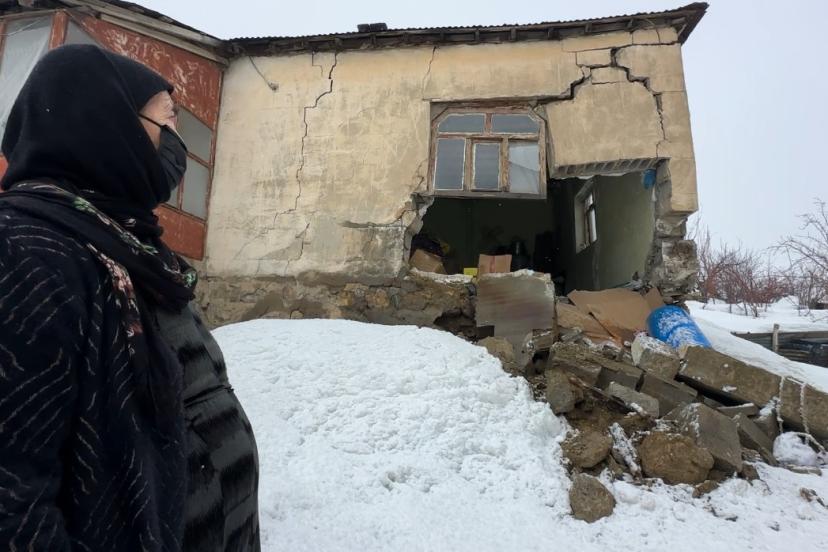 Yoğun kar yağışının etkili olduğu Hakkari’nin Yüksekova ilçesinde bir evin duvarı çöktü. Uykusunda yakalandığı felaketi deprem zannederek büyük korku yaşayan Pirüze Bala, kış ortasında evsiz kaldı.