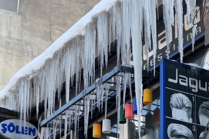 İlçe genelinde geçtiğimiz aylarda etkili olan yoğun kar yağışı, yerini aşırı soğuklara bıraktı. Kar kalınlığının yüksek kesimlerde 3, ilçe merkezinde ise 1 metreyi aştığı bölgede, termometrelerin ani düşüşüyle birlikte hava adeta buz kesti. Hava sıcaklığının gece saatlerinde sıfırın altına düşmesiyle birlikte, bina saçaklarında donma meydana geldi. Bazı binaların çatılarından sarkan buz kütlelerinin uzunluğu 1 metreyi geçti. Vatandaşlar, yaya geçişleri sırasında sarkıt tehlikesine karşı dikkatli olmaları konusunda uyarıldı.