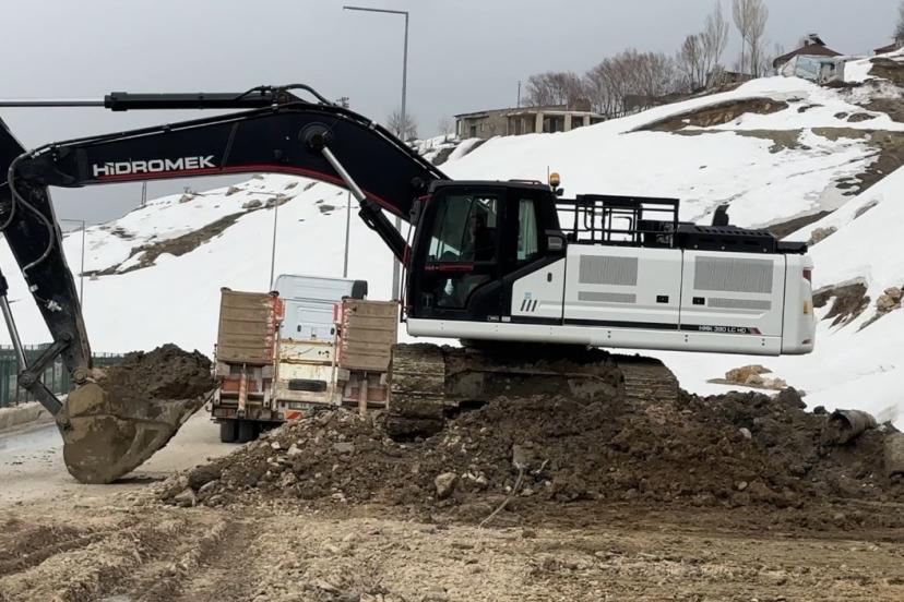 Güvenlik gerekçesiyle yolun bir şeridi trafiğe kapatılırken, trafik akışı kontrollü olarak sağlanıyor. Yüksekova Belediyesine ait iş makineleri, yola inen toprak ve taş yığınlarını kamyonlara yükleyerek tahliye çalışmalarını sürdürüyor.
