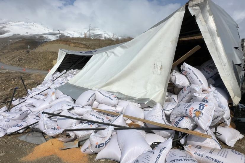 Hakkari’nin Yüksekova ilçesinde kar yağışı ve buzlanma nedeniyle yoldan çıkarak devrilen İran plakalı tırın sürücüsü yaralandı.