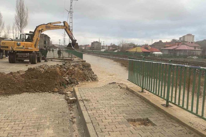 Hakkari’nin Yüksekova ilçesinde etkili olan sağanak yağışların ardından debisi yükselen Büyükçay Deresi kenarındaki istinat duvarı çöktü.