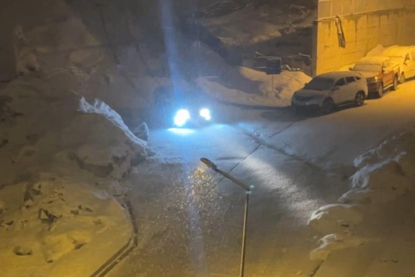 Hakkari’nin Yüksekova ilçesinde akşam saatlerinde etkili olan yoğun kar yağışıyla birlikte ilçe beyaza büründü.
