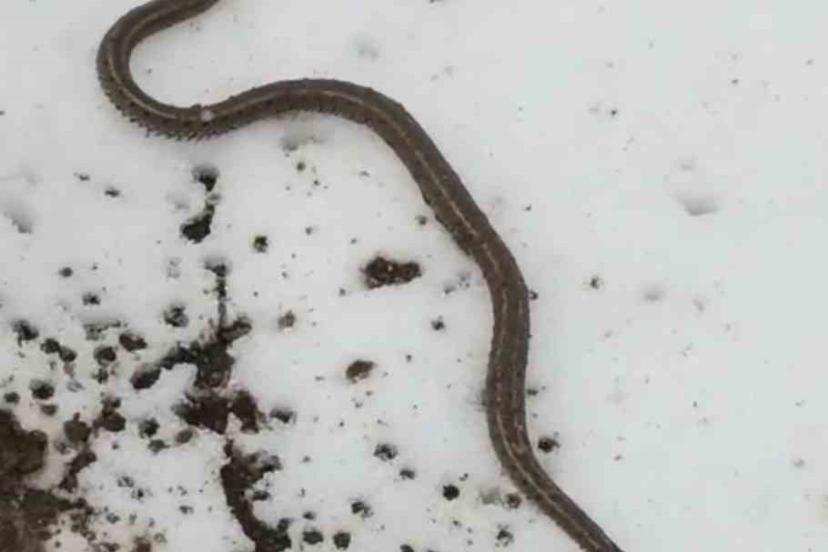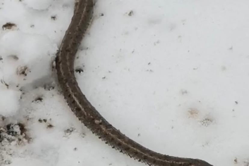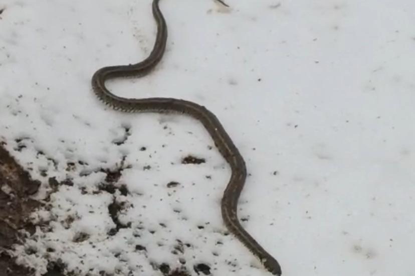 Kar üzerinde bir süre gezinen yılan, daha sonra gözden kayboldu.