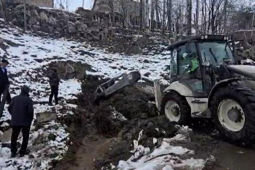 Hakkari’nin Yüksekova ilçesinde caminin arıza yapan su hattını onarmak için çalışma yürüten köylüler, yaklaşık 1 metre uzunlu...
